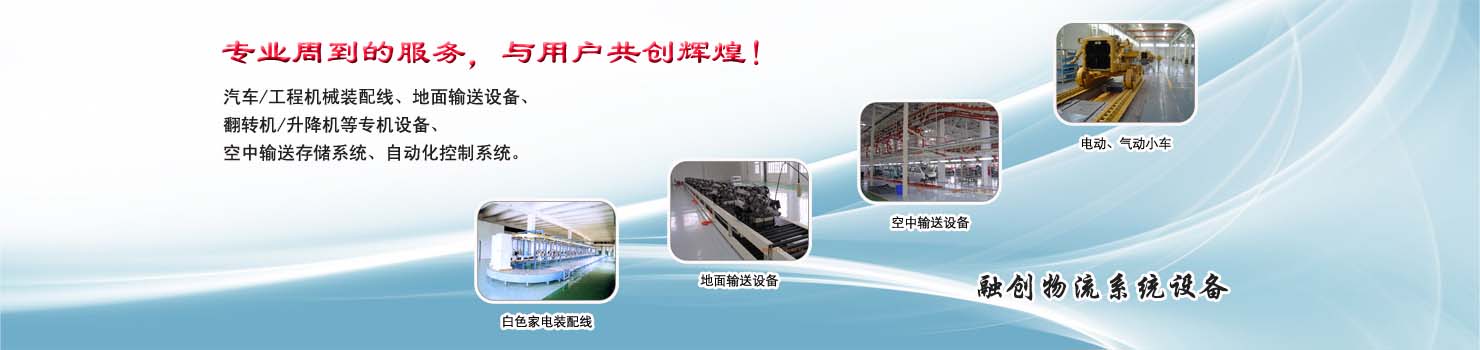 無(wú)錫市融創(chuàng)物流系統(tǒng)設(shè)備有限公司專(zhuān)業(yè)從事物流輸送設(shè)備、各類(lèi)裝配流水線(xiàn)設(shè)備、各類(lèi)生產(chǎn)非標(biāo)專(zhuān)機(jī)設(shè)備和自動(dòng)化控制系統(tǒng)的專(zhuān)業(yè)生產(chǎn)企業(yè)。廣泛應(yīng)用于轎車(chē)、卡車(chē)、客車(chē)、各類(lèi)工程機(jī)械、發(fā)動(dòng)機(jī)、車(chē)橋、農(nóng)業(yè)機(jī)械、郵政、家電等行業(yè) ...... >> more >>